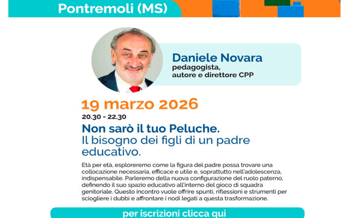 Daniele Novara sarà a Pontremoli per aiutare i genitori a riflettere sul ruolo del padre oggi. Giovedì 19 marzo alle 20.30 a Pontremoli, al Teatro della Rosa, si svolgerà l’appuntamento della Scuola genitori insieme a [...]
